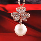 18K Rose Gold Plated Pave Lucky Clover with Imitation Pearl Necklace