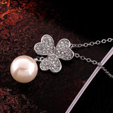 18K White Gold Plated Pave Lucky Clover with Imitation Pearl Necklace