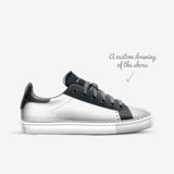 Traditional tennis shoes featuring derby type lacing and embossed leather details. The custom logo tag placed on the tongue makes the design clean and neat. A timeless must have.