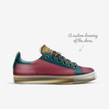 Traditional tennis shoes featuring derby type lacing and embossed leather details. The custom logo tag placed on the tongue makes the design clean and neat. A timeless must have.
